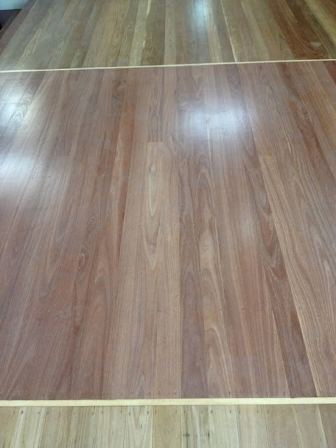 The Sydney Blue Gum is in the middle between Spotted Gum on the left and Tallowood on the right. It didn't look as red as the last place was in, so I feel a little bit better that it will be OK. The guys there were so helpful and he did say that if you were using it in a house with a lot of colour on the wall, it might clash and look a little too much in red but given my interior is going to be all white he said it will be fine.